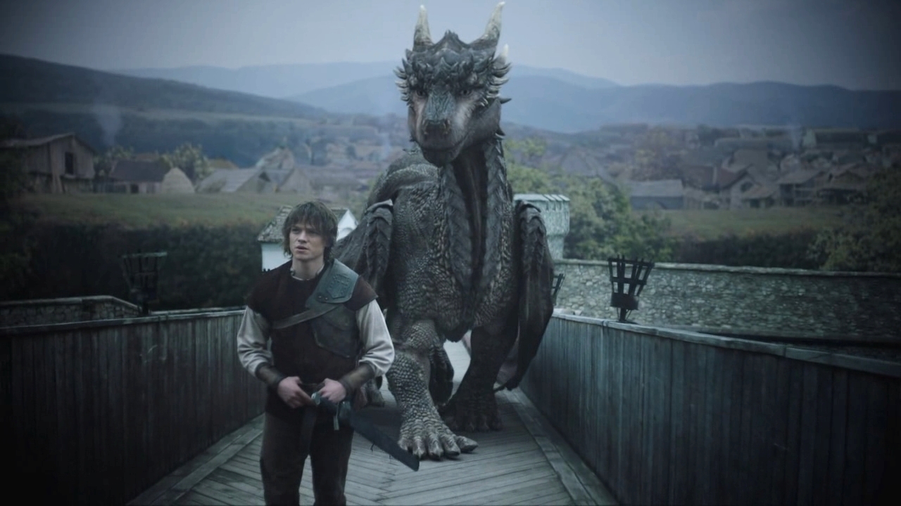 Der mächtige Drache Drago und König Gareth haben Freundschaft