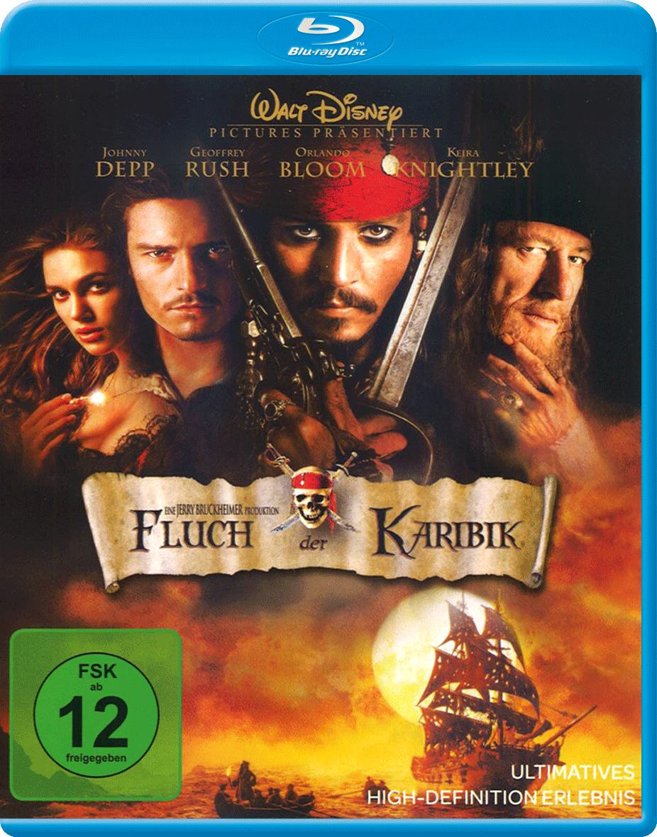 Das paradiesische Leben des charmanten Captain Jack Sparrow (Johnny Depp) erhält einen jähen Dämpfer, als der finstere Captain Barbossa (Geoffrey Rush) sein stolzes Schiff, die "Black Pearl", in seine Gewalt bringt und mit ihr die Hafenstadt Port Royal überfällt, wo er die bildhübsche Gouverneustochter Elizabeth Swann (Keira Knightley) entführt. Das kann der abenteuerlustige Waffenschmied Will Turner (Orlando Bloom), Elizabeth' Vertrauter seit Kindertagen, nicht auf sich beruhen lassen. Gemeinsam mit dem Haudegen Sparrow macht er sich auf die Jagd nach der mörderischen Piratenbande um Barbossa - und seiner verlorenen Liebe. Noch ahnen die beiden Draufgänger nichts von einem mysteriösen Fluch, der auf Barbossa und seiner blutrünstigen Mannschaft lastet: Bei Mondschein verwandeln sie sich in lebendige Skelette, dazu verdammt, auf ewig als Untote durch die Nacht zu ziehen. Nur ein außergewöhnliches Geheimnis kann den Fluch brechen... |